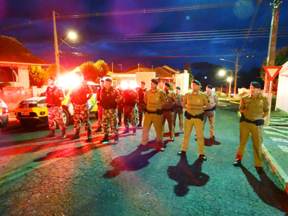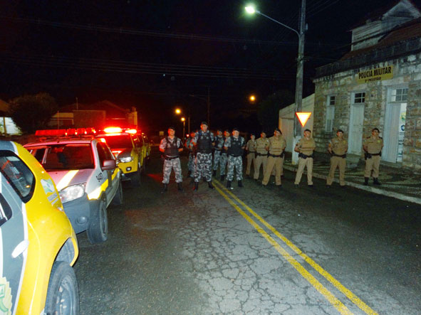 A Polícia Militar, com apoio da equipe de Choque de Ponta Grossa, realizou operação de arrastão e saturação na noite de quinta-feira (27), em Palmeira. A ação teve início às 19 horas e contou com quatro viaturas, sendo uma da PM e três do Choque. Oito policiais do 2º Pelotão de Palmeira e oito da equipe de Choque participaram da operação. O encerramento da operação aconteceu durante a madrugada.