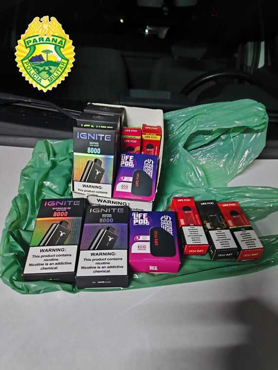 A operação também resultou na apreensão de 12 cigarros eletrônicos (Pod’s) que estavam sendo comercializados irregularmente.