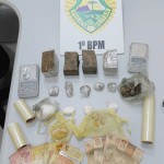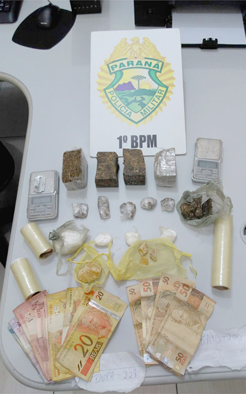 Foi vistoriado um terreno próximo e encontrado dentro de uma pochete 6 buchas de substância análoga a maconha, além de R$ 228,00 e a contabilidade do tráfico de drogas. Em ato contínuo foi vistoriada uma casa em construção no mesmo terreno, sendo encontrado duas balanças de precisão, 3 rolos de papel filme, 370 gramas de maconha, 52 gramas de cocaína e 27 gramas de ‘’crack’’, além de lâmina de barbear. Entrado em contato novamente com os abordados, um deles confessou estar realizando tráfico de drogas no local para uma terceira pessoa. Eles foram detidos e encaminhados à delegacia.