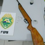Após a entrega dos detidos na delegacia, a equipe recebeu nova denúncia de armas e drogas no terreno da apreensão, retornando ao local, foi encontrando uma espingarda de pressão adaptada para calibre .22, além de mais 14 pedras de substância análoga a ‘’crack’’ enroladas em papel alumínio. Os produtos foram levados para à delegacia.