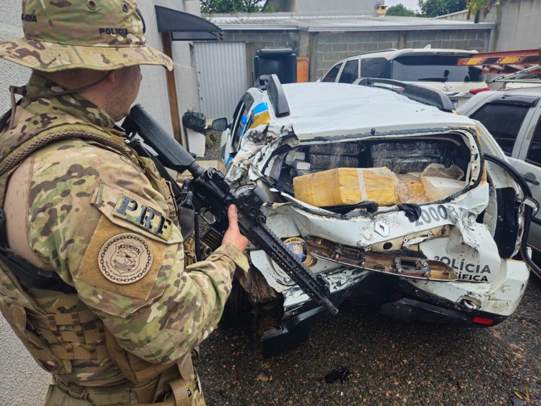 A Polícia Rodoviária Federal (PRF) localizou e apreendeu nesta quinta (5), em Balsa Nova (PR), um veículo adesivado como sendo da Polícia Científica do Paraná. A falsa viatura realizava o transporte de maconha na BR-277, do interior para Curitiba.