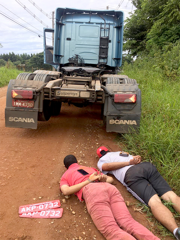 Numa ação conjunta da Polícia Civil de Ponta Grossa e de Castro, os dois homens foram presos logo depois de serem flagrados trocando as placas de um caminhão Scania R 420 de cor azul com placas IMM 4790 de Passo Fundo-RS que teria sido roubado em Palmeira na manhã do último domingo (10), e segundo informações, enquanto um dos homens que foram presos conduzia o caminhão, o outro realizava a função de “batedor” utilizando um veículo VW/Golf de cor cinza com placas ASS 2022 de Ponta Grossa.