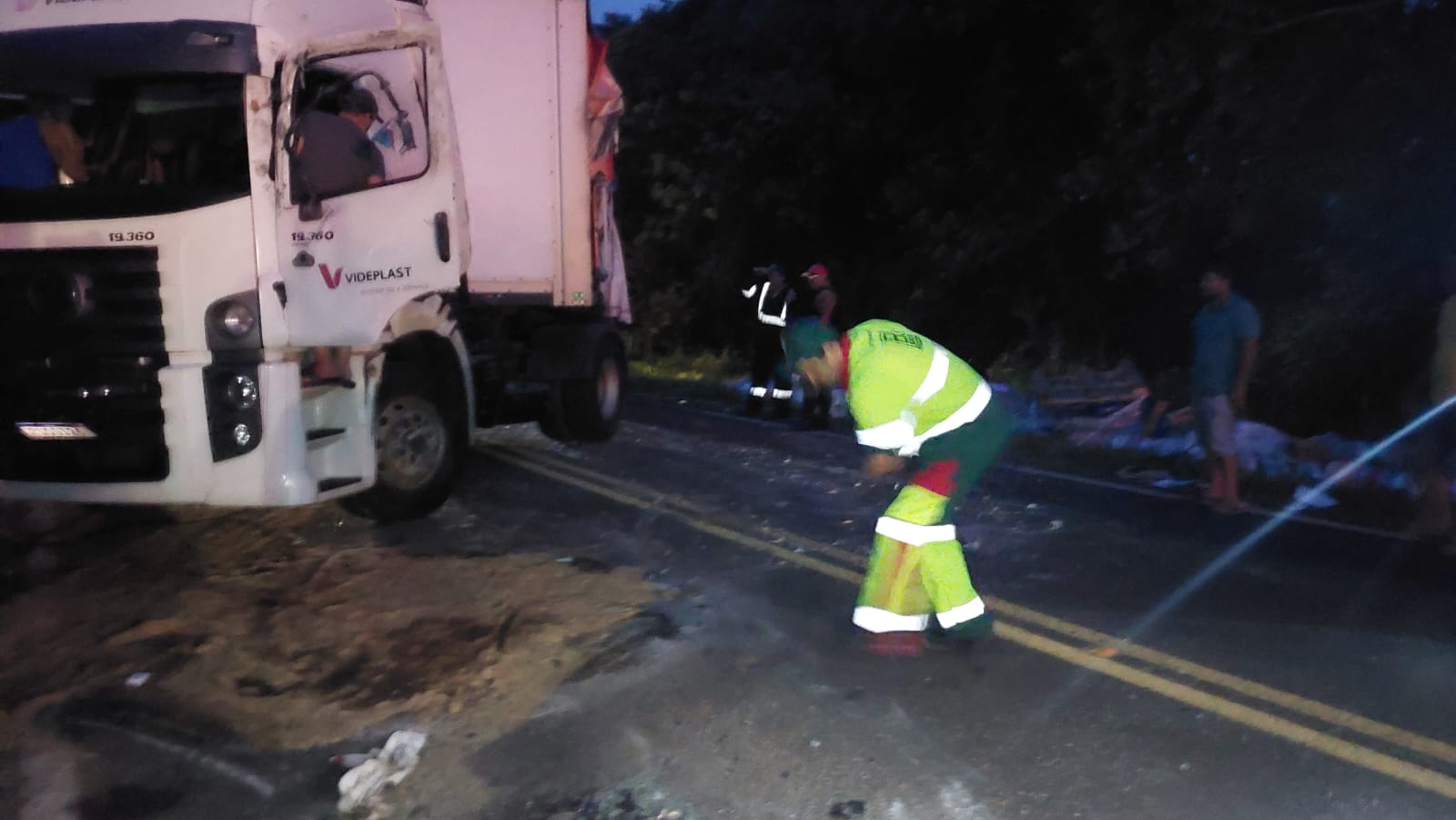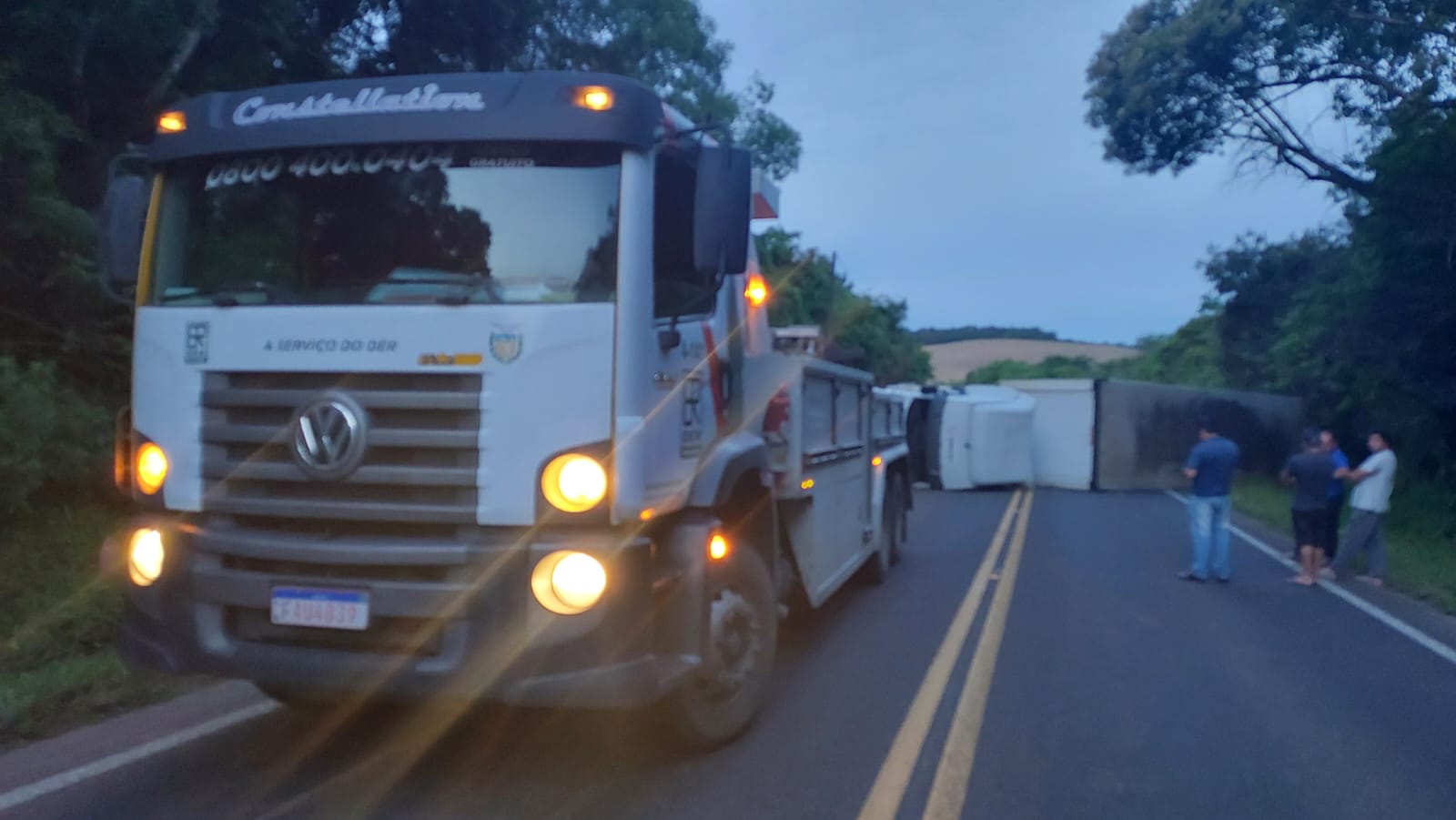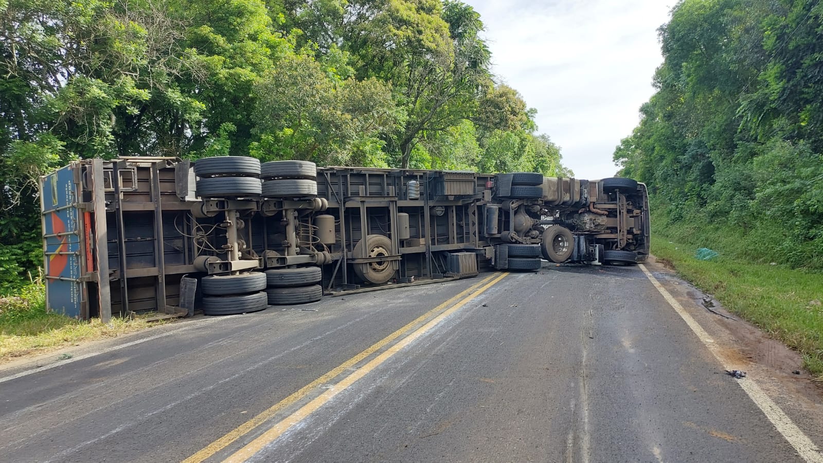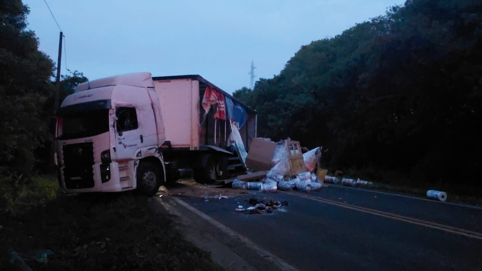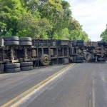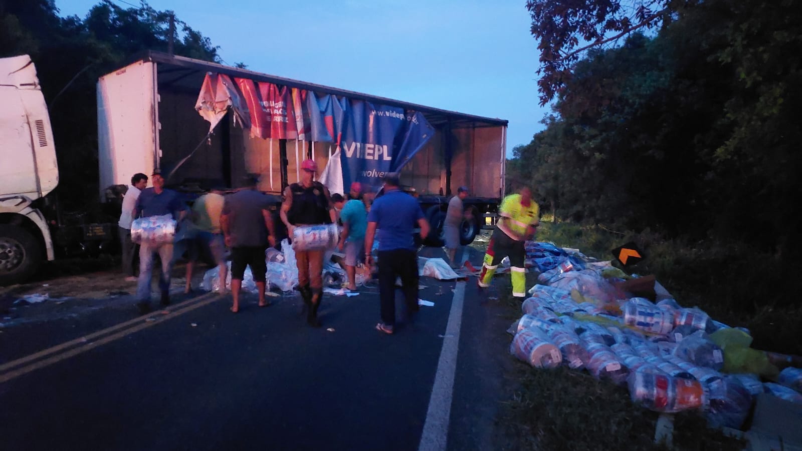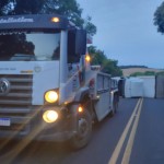 A equipe da Polícia Rodoviária Estadual (PRE), juntamente com dois guinchos do DER, compareceu ao local do acidente e fez a liberação da pista. Toda a carga da carreta caiu do reboque na hora em que ocorreu o tombamento. Motoristas que acompanhavam a situação auxiliaram na retirada dos produtos da pista.