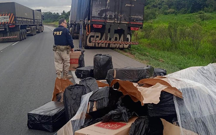 PRF apreende na BR 277 carreta carregada com 400 mil maços de cigarros contrabandeados