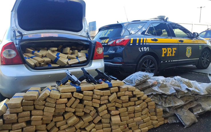 PRF apreende menor com quase meia tonelada de maconha e 3 pistolas na BR 277