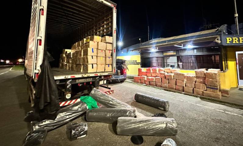A Polícia Rodoviária Federal (PRF) apreendeu, nesta terça-feira (9), quase cinco toneladas e meia de maconha na BR-277, em Balsa Nova (PR). A droga estava escondida no compartimento de carga de um caminhão paraguaio.