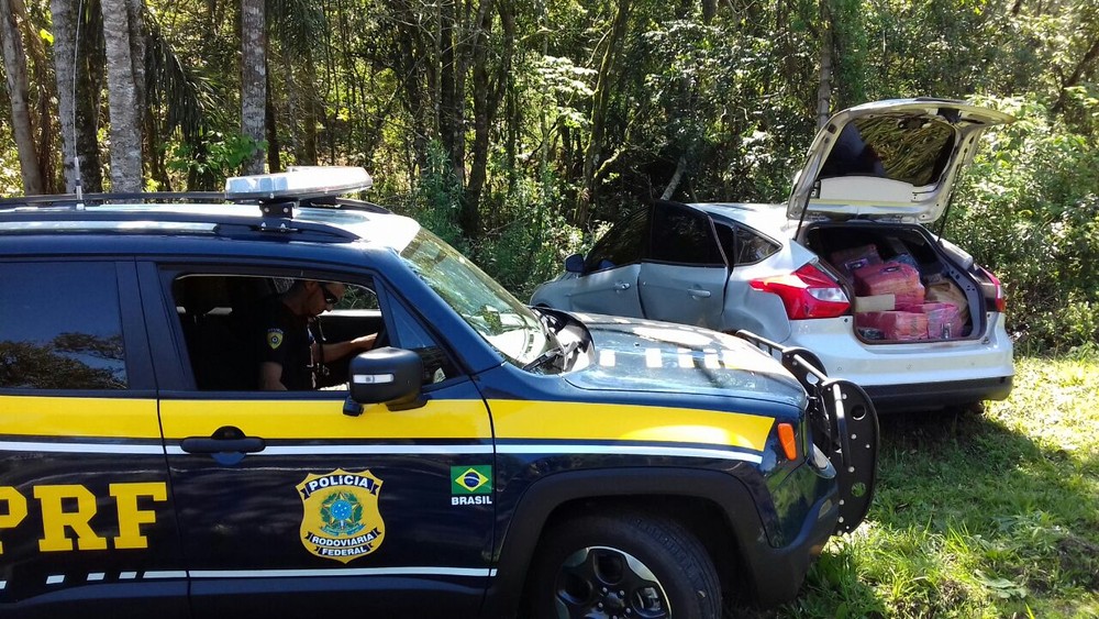Segundo a PRF, o condutor acabou fugindo em direção a um matagal.