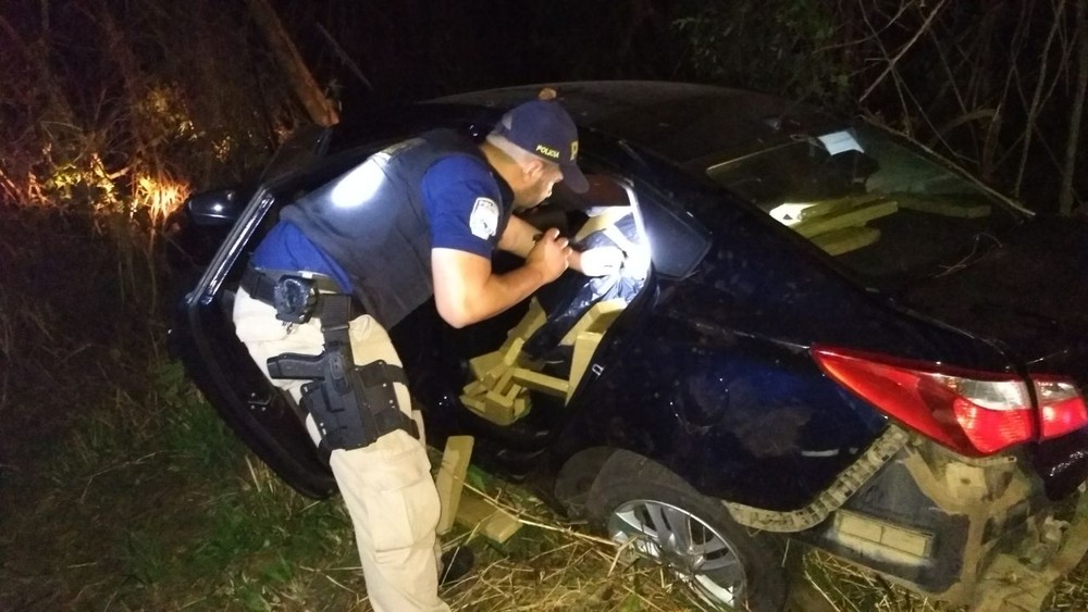 Durante uma ronda de rotina, os agentes da PRF viram o automóvel trafegando em alta velocidade na BR-277. Por causa disso, o veículo foi seguido por alguns quilômetros até que, o motorista suspeito perdeu o controle da direção e bateu o carro contra um barranco.