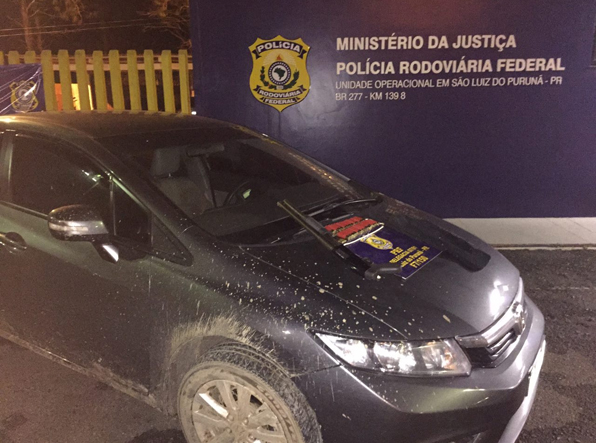 Os policiais rodoviários federais levaram o Honda Civic até a Unidade Operacional São Luiz do Purunã, onde verificaram que ele portava placas clonadas de outro veículo de modelo similar.