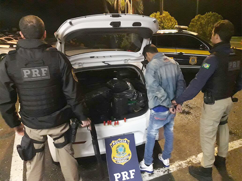 PRF prende jovem de 18 anos com espingarda, carro roubado e 434kg de maconha