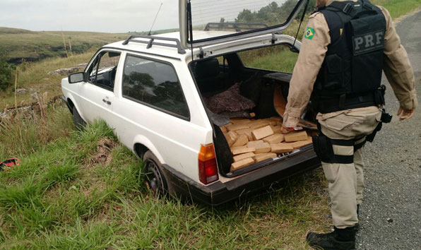 A maconha era transportada no interior do automóvel. O motorista desobedeceu a ordem de parada dos policiais rodoviários federais. Seguido por cerca de sete quilômetros, ele transitou pelo acostamento e pela contramão, colocando em risco os demais usuários da rodovia. Por fim ele abandonou o carro e fugiu a pé, por uma área de mata e ainda não foi localizado.