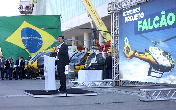A segurança pública do Paraná ganhou um grande reforço, desta vez no policiamento aéreo. O governador Carlos Massa Ratinho Junior lançou nesta sexta-feira (18) o Projeto Falcão, que vai utilizar tecnologias de última geração para dar suporte aéreo às operações de segurança pública no Estado no combate ao crime organizado. Ele prevê a utilização de cinco drones e quatro aeronaves tripuladas para contribuir com o trabalho das equipes policiais que estão em terra.