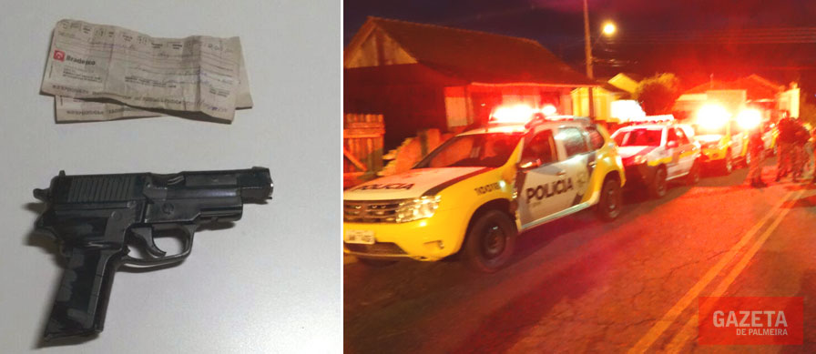 Com o suspeito foram apreendidos um simulacro de arma de fogo, tipo pistola, além de folhas de cheques roubados no município da Lapa. Sua participação em assaltos ocorridos em Palmeira, contra estabelecimentos comerciais da cidade, haviam sido confirmadas previamente pelas vítimas. O suspeito confessou seu envolvimento nos crimes.