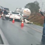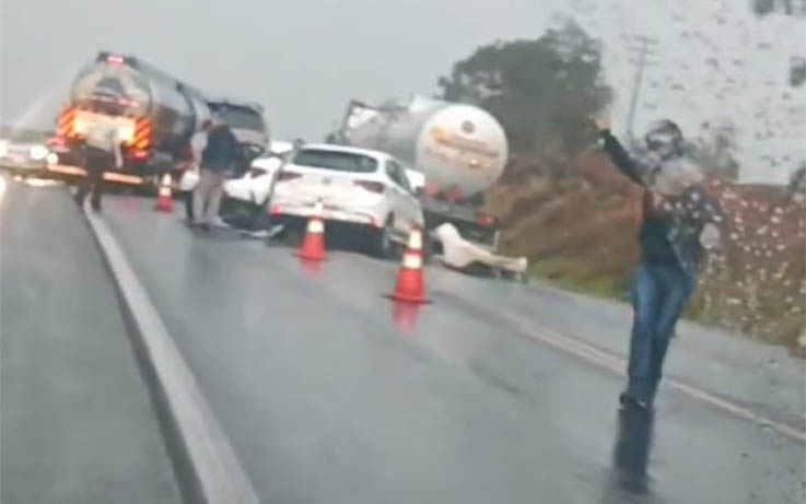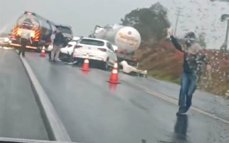 Os veículos envolvidos foram um caminhão Scania, de cor branca e placas de Cascavel-PR, um Fiat Argo, também branco, com placas de Belo Horizonte-MG, e um Hyundai HB20, branco, registrado em São José dos Pinhais-PR.