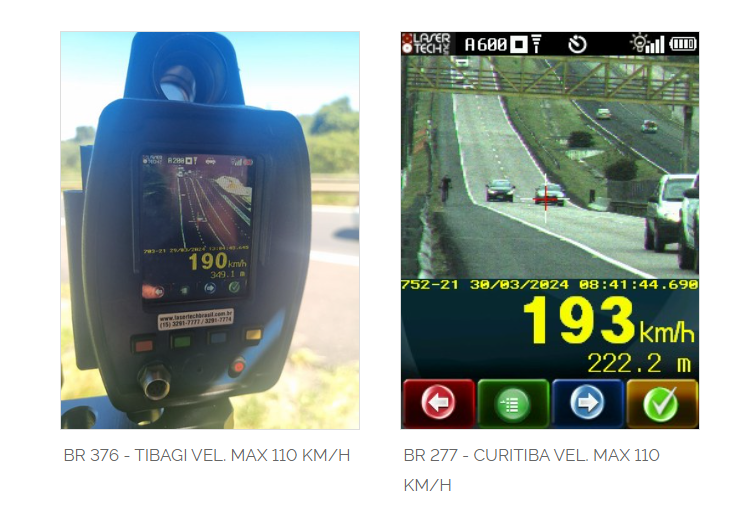 Dentre os diversos flagrantes de excesso de velocidade, destaca-se um condutor flagrado a 193 km/h na BR-277, ainda em Curitiba, na manhã do sábado (30). No local, com velocidade máxima de 110 km/h, o fluxo era intenso de automóveis, motocicletas e também de ciclistas no acostamento, realçando o comportamento de risco. Outro flagrante similar foi registrado na BR-376, em Tibagi, com limite também em 110 km/h, sendo um motorista flagrado a 190 km/h. Para estes dois casos a penalidade prevista é de multa de R$ 880,00 e suspensão da Carteira Nacional de Habilitação, assim como para outros condutores que tenham sido flagrantes excedendo a velocidade máxima em mais de 50%.