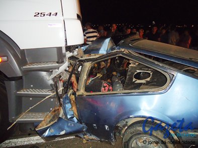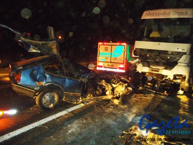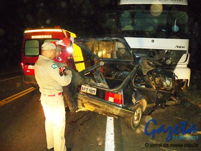 Leonir Ferreira da Rocha, de 32 anos, que conduzia o veículo, Celso Aires da Silva, 33, e Célia Maria Guimarães, de 42 anos, morreram na colisão e foram encaminhados para o Instituto Médico Legal de Ponta Grossa. O caminhão Mercedes-Benz Axor 2544 placa AVY-2092 e carreta placa AVW- 5583, ambas de Corbélia, era conduzido por Edson Breda, de 40 anos, que ficou ileso.