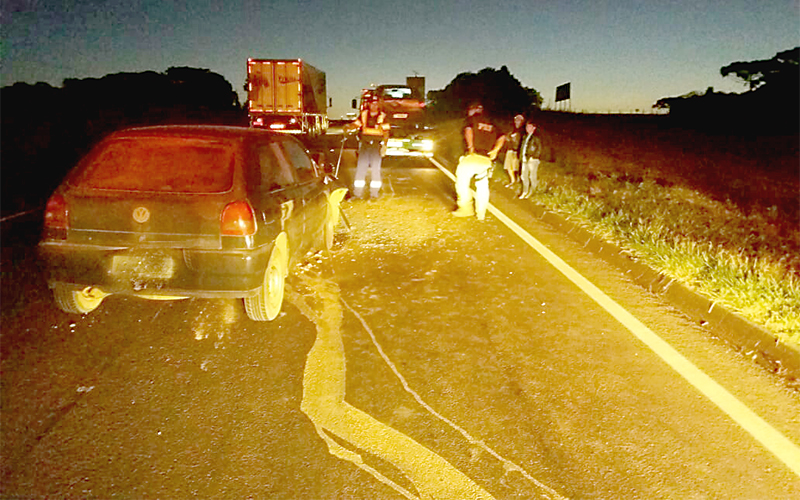 Conforme a Polícia Rodoviária Federal (PRF), um Fiat Palio, com placas de Palmeira, estava parado na terceira faixa com problemas mecânicos e cabou sendo atingido por um Gol Special, também de Palmeira. O acidente aconteceu no km 183 da rodovia, próximo da Colônia Maciel.
