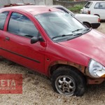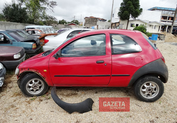 Um veículo Ford Ka, cor vermelha, placas HPG 0639, de Ponta Grossa, colidiu contra placas de sinalização na noite de domingo (3), no cruzamento das ruas Conceição e Araldo Manoel Erichsen. Os quatro ocupantes, logo após o acidente, desceram do veículo e empreenderam fuga.