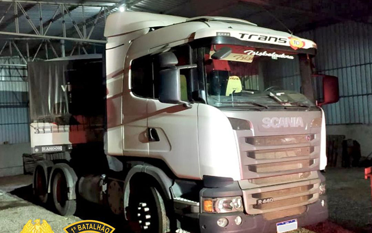 Na madrugada desta sexta-feira (5), por volta das 03:10 horas, a equipe da Polícia Militar de Palmeira verificou um veículo com possível alerta de roubo em uma propriedade rural no município de Palmeira. Após verificar as informações recebidas, a polícia encontrou o caminhão SCANIA/R 440 A6X2 e a carreta SR/RANDON SR CA na estrada rural Pugas de Cima. A propriedade onde o veículo foi encontrado não possui moradores.
