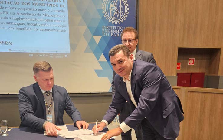 O acordo foi firmado pelo presidente da AMP e prefeito de Santa Cecília do Pavão, Edimar Santos, e pelo presidente do CREA/PR, Clodomir Luiz Ascari. A cerimônia contou ainda com a presença do assessor da Casa Civil, Bruno Cividini, que representou o superintendente de Apoio aos Municípios do Governo do Paraná, Junior Weiller, e do diretor-executivo da AMP, Joarez Henrichs.