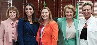 A líder da Bancada Feminina, deputada Mabel Canto (PSDB), juntamente com as deputadas Márcia Huçulak (PSD), Cloara Pinheiro (PSD) e Luciana Rafagnin (PT), estiveram reunidas nesta segunda-feira (20), com a secretária Leandre Dal Ponte, da Secretaria da Mulher, Igualdade Racial e Pessoa Idosa (SEMIPI), para receber contribuições ao projeto de lei nº 625/2023, que cria o Código de Defesa dos Direitos da Mulher Paranaense.