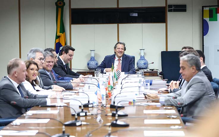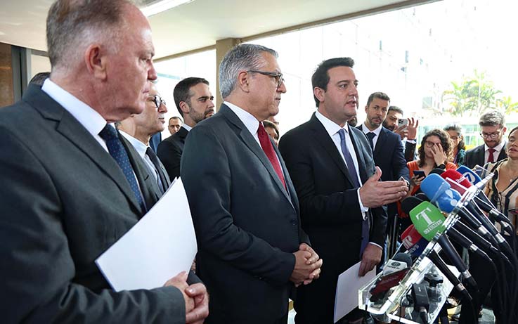 Os governadores dos estados integrantes do Consórcio de Integração Sul e Sudeste (Cosud) se encontraram nesta terça-feira (26) com o ministro da Fazenda, Fernando Haddad, em Brasília. O governador Carlos Massa Ratinho Junior, presidente do consórcio, apresentou a pauta de renegociação das dívidas dos estados e ressaltou que o Paraná está com boa saúde financeira do Paraná. O estado saiu da oitava maior Dívida Consolidada Líquida (DCL) do País em 2018 para se tornar segundo ente da federação com a menor dívida líquida em 2023.