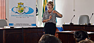 A palestra foi ministrada pela professora Jacqueline Kowalski, que é advogada e servidora da Câmara Municipal de Curitiba desde 1985. No Legislativo da capital paranaense, Jaqueline trabalhou na Diretoria de Apoio às Comissões e também no Departamento de Plenário e Processo Legislativo.