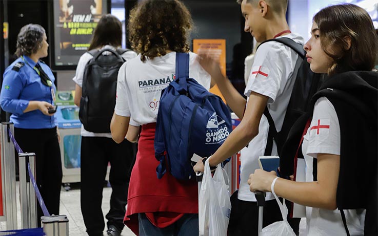 Os embarques dos estudantes da rede estadual de ensino que farão intercâmbio pela quarta fase do programa Ganhando o Mundo, do Governo do Paraná, começaram nesta sexta-feira (12). Ao todo, mil alunos viajarão a cinco países diferentes ao longo de 2024 nesta edição do programa. O primeiro grupo, composto por 28 alunos, decolou do Aeroporto Afonso Pena, em São José dos Pinhais, com destino à Inglaterra. Nas próximas semanas, outros estudantes também viajam rumo aos Estados Unidos, Nova Zelândia, Austrália e Canadá.