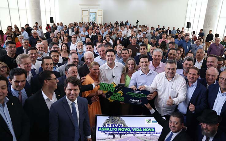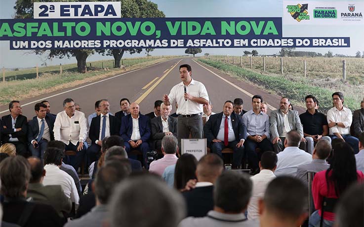 O governador Carlos Massa Ratinho Junior lançou nesta segunda-feira (13) a segunda etapa do programa Asfalto Novo, Vida Nova, que envolve investimento de R$ 132 milhões e vai contemplar 38 municípios, de 7 mil a 12 mil habitantes, para que cheguem a 100% de pavimentação nas vias urbanas, além da troca de luminárias convencionais por sistemas LED, mais eficientes e econômicos. Serão R$ 98,49 milhões para pavimentação e R$ 33.651.000 para iluminação. Os recursos serão liberados pela Secretaria de Estado das Cidades (Secid). Após essa fase, outros 43 vão receber recursos do programa.