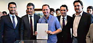 O prefeito de Palmeira, Edir Havrechaki (PSC) participou de solenidade no Palácio Iguaçu, em Curitiba, na segunda-feira (10), na qual o governador Beto Richa (PSDB) assinou a homologação da licitação, com valor de R$ 480 mil, para pavimentação e urbanismo de trecho da rua Cel. Ottoni Ferreira Maciel, entre as ruas Dom Alberto Gonçalves e Araldo Manoel Erichsen, além de trecho da Dom Alberto entre as ruas Cel. Ottoni e Jacob Stadler.