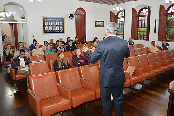 A Câmara Municipal de Palmeira realizou na quinta-feira (10) a segunda palestra da Escola do Legislativo em 2015. Cerca de 30 pessoas, entre vereadores, servidores do Legislativo e da Prefeitura, como também representantes da sociedade civil prestigiaram a palestra sobre o tema improbidade administrativa. Para garantir a comprovação da transparência e do bom uso dos recursos públicos, a assiduidade dos servidores, bem como dos vereadores é registrada através de sistema biométrico.