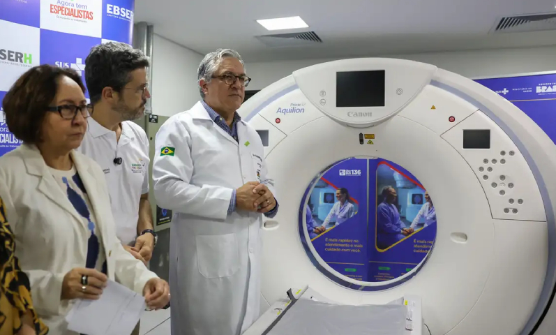 “São equipamentos importantes para reduzir o tempo de espera. Só esse tomógrafo, tem a capacidade de a gente realizar, por ano, o atendimento de metade da população que está na fila esperando uma tomografia aqui no DF”, afirma o ministro