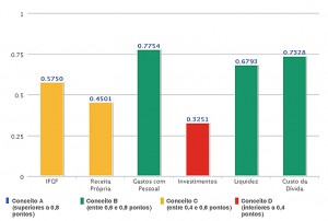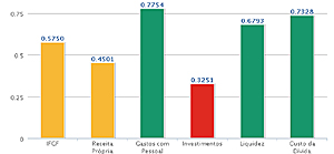 Para compor o IFGF, são levados em consideração cinco indicadores. No indicador Receita Própria, o índice de Palmeira foi 0,4501; em Gastos com Pessoal, índice de 0,7754; em Investimentos, índice de 0,3251; no indicador Liquidez, índice 0,6793; e em Custo da Dívida, índice 0,7328. A média remete ao IFGF de 0,5750. A pontuação do IFGF varia entre 0 e 1, sendo que, quanto mais próximo de 1, melhor a gestão fiscal do município no ano em observação.