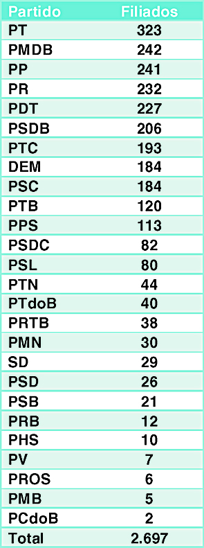 Partidos políticos ganham reforço de 134 novos filiados entre março e abril