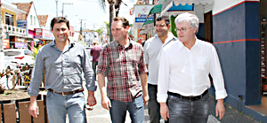 Além das reuniões, Rossoni também visitou alguns estabelecimentos comerciais e conversou com algumas pessoas durante uma caminhada pela rua Conceição, ao lado do prefeito e do vice-prefeito.