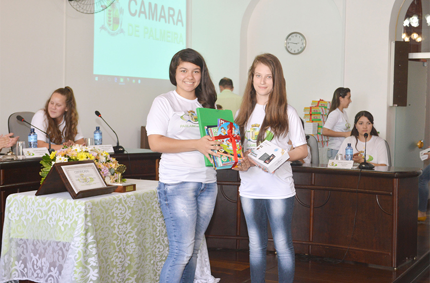 A Câmara Municipal realizou na tarde da terça-feira (13), a Sessão Solene de encerramento e premiação, da terceira edição do Parlamento Jovem. O evento contou com a presença de professores e diretores de escolas públicas e privadas. Com a Casa lotada de estudantes de diversas escolas de Palmeira, os nove vereadores juniores e seus respectivos suplentes receberam homenagens.