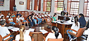 Antes do início da sessão, o público recebeu uma breve explanação da coordenadora do programa Parlamento Jovem, Flaviana Zarpelon Almeida de Sousa, sobre a importância da vida política de um município e o quanto isso interfere na realidade cotidiana de uma cidade.