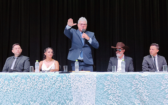 Concluída a etapa de posse dos vereadores, foi a vez de empossar o prefeito Altamir Sanson e o vice-prefeito José Ailton Vasco, sendo que os dois entregaram seus diplomas e declarações de bens, realizaram o juramento e foram declarados empossados como prefeito e vice para a gestão 2025-2028, que se iniciou neste dia 1º de janeiro e que termina no dia 31 de dezembro de 2028.