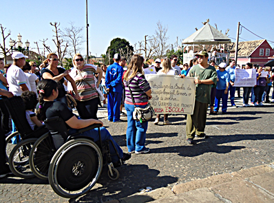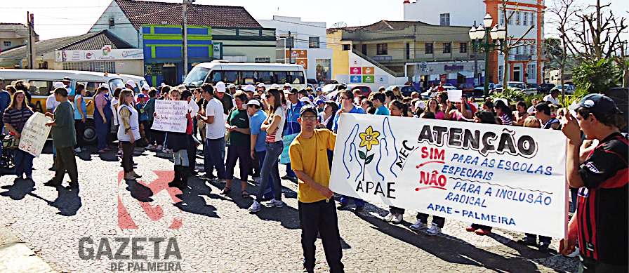 Em manifestação realizada na tarde de quarta-feira (7), com a participação de aproximadamente 300 pessoas, entre alunos, pais, professores e funcionários da Escola de Educação Especial mantida pela Associação de Pais e Amigos dos Excepcionais (APAE) de Palmeira, foi registrada a contrariedade dos manifestantes com o texto da Meta 4 do Plano Nacional de Educação (PNE), cujo projeto está prestes a ser votado no Senado Federal. Em síntese, a aprovação retira recursos das escolas de educação especial, inviabilizando seu funcionamento.