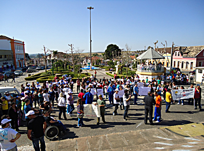 A manifestação em Palmeira começou com uma concentração na praça Marechal Floriano Peixoto, em frente à Igreja Matriz, e depois percorreu todo o trecho do calçadão da rua Conceição. Diversos cartazes e faixas mostravam a indignação dos manifestantes com a possibilidade de prejuízos à educação especial ofertada pela APAE.