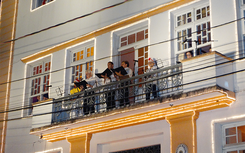 Durante a apresentação as crianças cantaram para o público nas janelas do edifício da prefeitura. O espetáculo teve aproximadamente 60 minutos, com canções natalinas, algumas executadas em conjunto pelos dois corais, ambos regidos pelo maestro Elias Eurich, e outras pela Orquestra, regida pelo maestro Nelson Lopes. Algumas músicas tradicionais que serão executadas durante a apresentação serão Jingle Bells, Noite Feliz e A Paz.