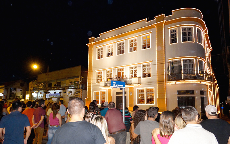 A população palmeirense foi em peso prestigiar o espetáculo do Natal de Luz e Alegria na noite de sábado (16). A Cantata de Natal aconteceu no Palácio da Viscondessa Querubina Rosa Marcondes de Sá, sede da Prefeitura de Palmeira. A apresentação contou com o Coral de alunos da Escola Municipal Ida Albach, da localidade do Quero-Quero, do Coral Municipal Vozes de Palmeira e da Orquestra Municipal de Palmeira. O evento marcou a inauguração das luzes natalinas no prédio da Prefeitura, na praça Marechal Floriano Peixoto e na Igreja Matriz.