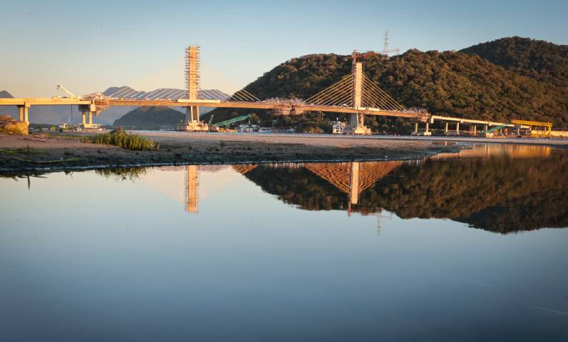 Com trecho estaiado quase pronto e 160 vigas lançadas, Ponte de Guaratuba atinge 91% de execução