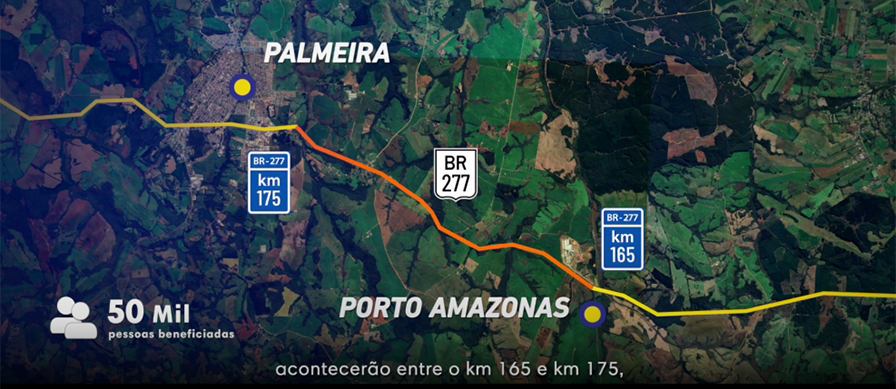 As duplicações irão contemplar trechos das rodovias PR-418 (km 5 ao 16), em Curitiba, PR-423 (km 9 ao 35), em Araucária e Campo Largo, e BR-277 (km 164 ao 175), entre Porto Amazonas e Palmeira. As duplicações no restante do trecho seguirão um cronograma progressivo: