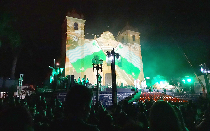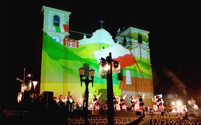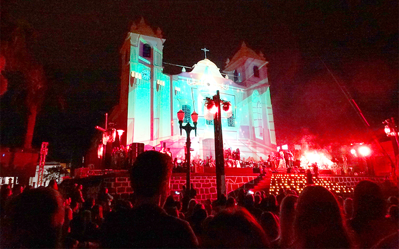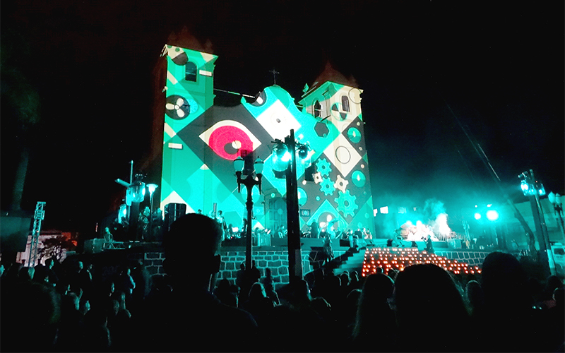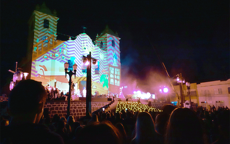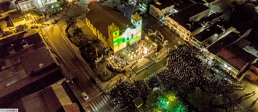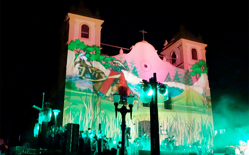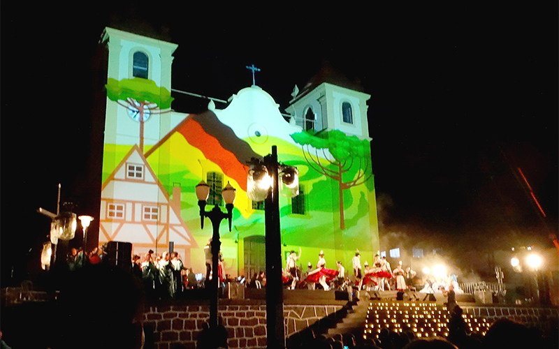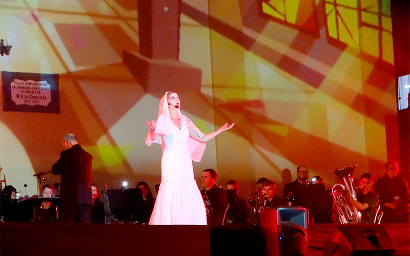 Uma noiva de branco sobrevoando a frente da Igreja Matriz foi o chamada para as lendas palmeirenses, que fazem parte da memória de grande parte da população. A religiosidade do povo não poderia ficar de fora e também foi apresentada através da execução de canção ‘Ave Maria’ e projeção de Nossa Senhora da Conceição, padroeira do município, na fachada da Igreja.