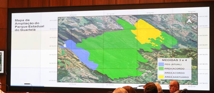 O governador Carlos Massa Ratinho Junior afirmou que o acordo é fruto de uma cooperação interfederativa. “É mais um compromisso com a área ambiental. Estamos ampliando em milhares de hectares o Parque Estadual do Guartelá, que é um dos maiores patrimônios em termos de riqueza ambiental de flora e fauna que nós temos no País. Nós já tínhamos ampliado em quatro vezes o Parque das Onças, no Litoral, pegando toda a Mata Atlântica, e agora é a vez do Parque Guartelá”, disse.