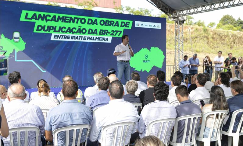 “Iniciamos hoje a duplicação da BR-277 em Palmeira e Irati. É o início dessa grande duplicação de uma rodovia importante, que há décadas precisava desse investimento. Na semana passada começamos a obra no trecho de Curitiba a São José dos Pinhais, que terá três pistas em cada sentido. Isso é motivo de alegria e comemoração, porque é uma rodovia essencial, por onde escoa toda a produção do Oeste até o Leste do Paraná, de Foz do Iguaçu ao Porto de Paranaguá”, afirmou Ratinho Junior.