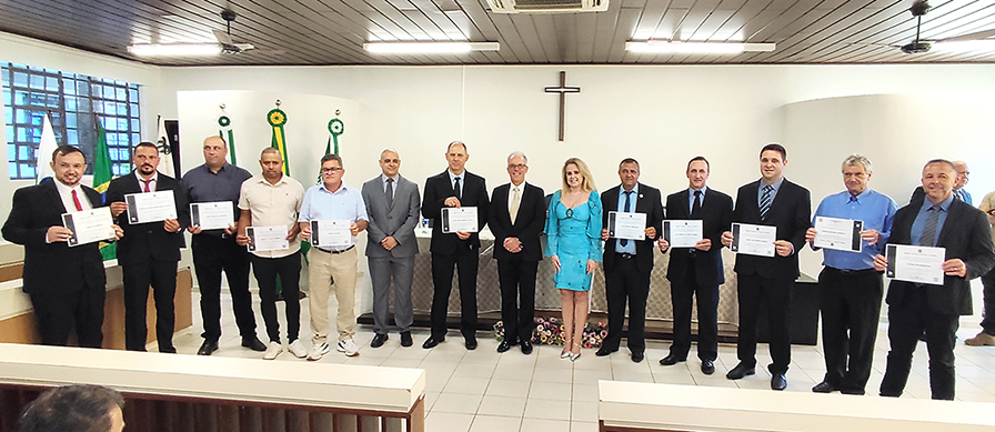Em seguida, finalizando o ato de diplomação, os nove vereadores eleitos em eleitos em 6 de outubro, para a legislatura 2025/2028 da Câmara Municipal de Palmeira, sendo foram diplomados: Fabíola Mereles (PP), Jovane Sebastião Ferreira (PSD), Edenir José Gaio Flores (Republicanos), Diego Fabrício Zanetti (Republicanos), Joslei Sequineli (União Brasil), Lucas dos Santos (União Brasil), Geraldo Vasco (PSD), Friedrich Norbert Kliewer (PL) e Gilmar Costa (PSB).