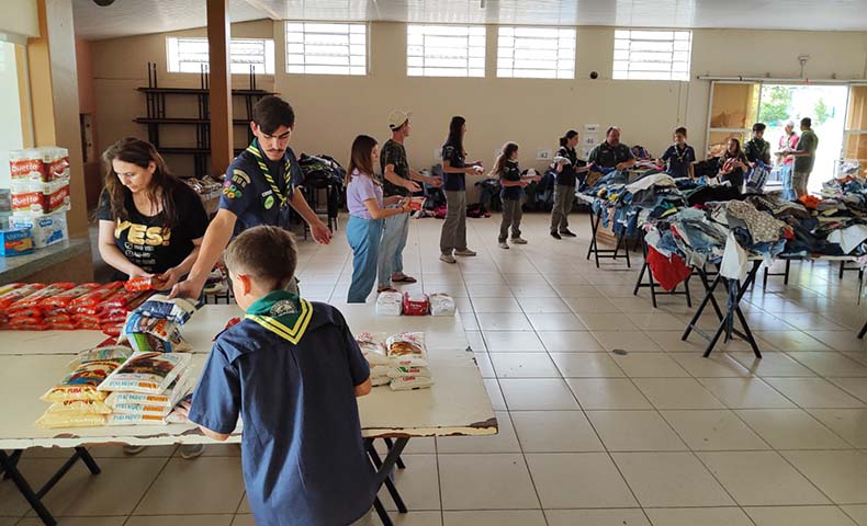Lar Acelino recebe 611 quilos de alimentos arrecadados pelo Grupo Escoteiro Tropeiros
