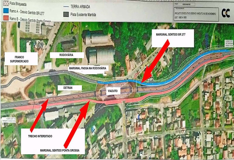 “Nesse trecho, o trânsito sentido Ponta Grossa e sentido São João do Triunfo será desviado por marginais que estão sendo construídas, inclusive utilizando o espaço que fica entre a antiga estação ferroviária e o terminal rodoviário”, explanou Santolin.